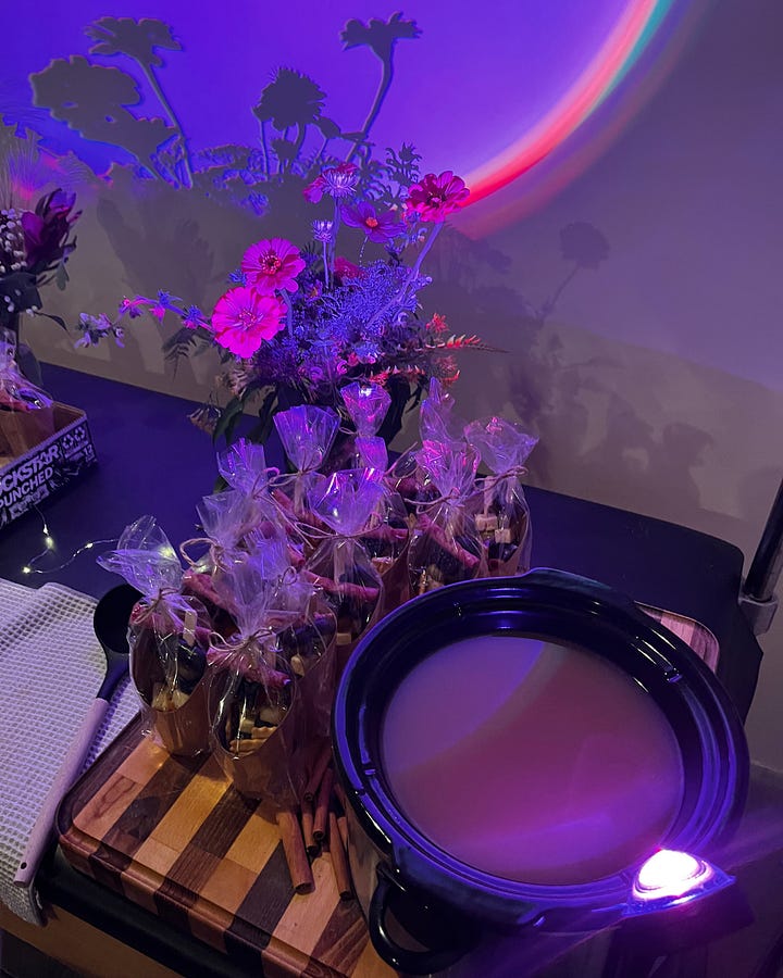 I also want to give a huge thank-you to my friend (and fellow club member) Dakotah, who created beautifully themed bouquets for each table to enjoy and take home at the end of the evening if desired. You’ll be seeing more of her arrangements at future club nights, and potentially other local vendors as well—which might also mean pop-up CWC collabs.
